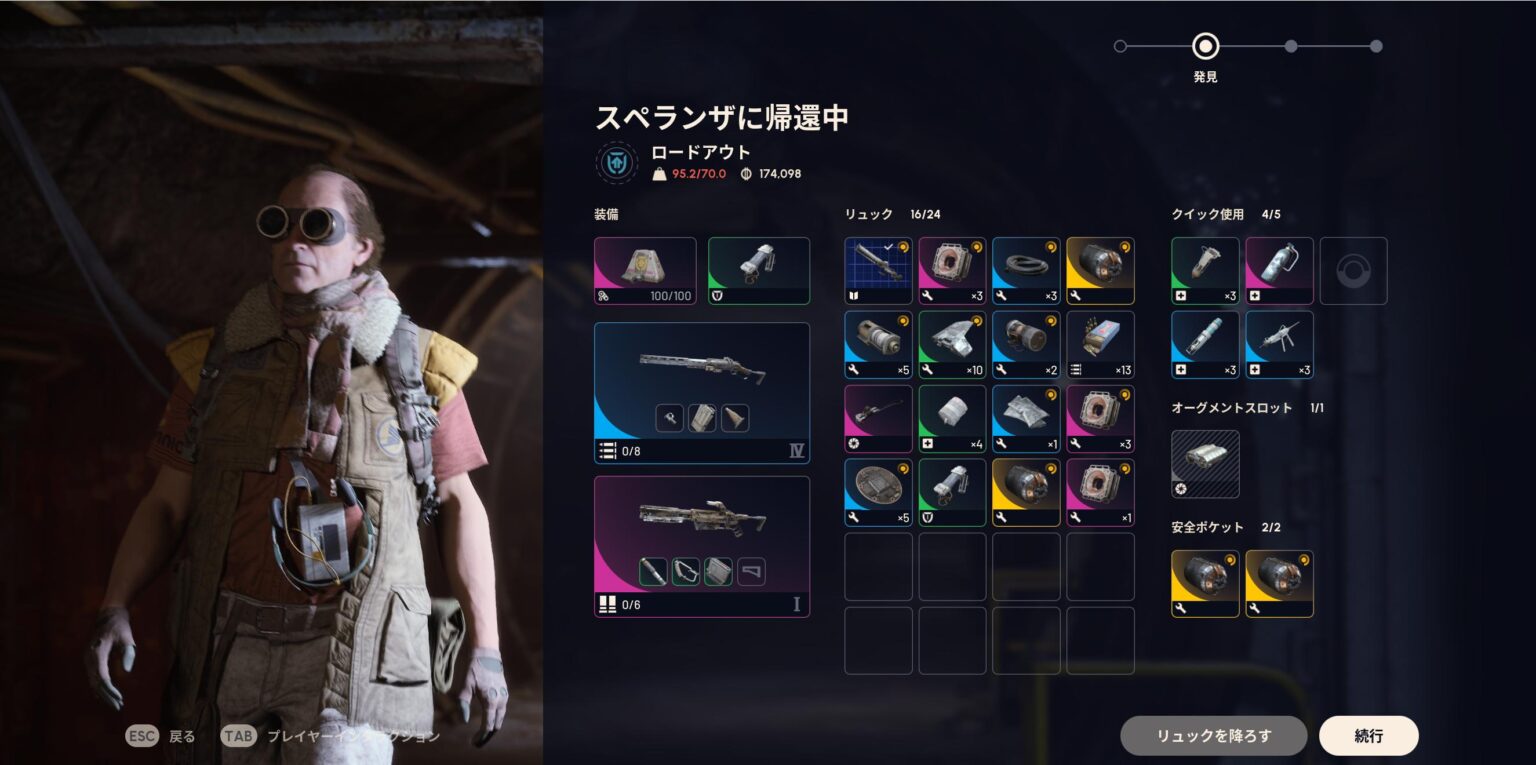 そのあと色々雑になって4連続帰還できずポケットに入れてた設計図が3つが今日の成果